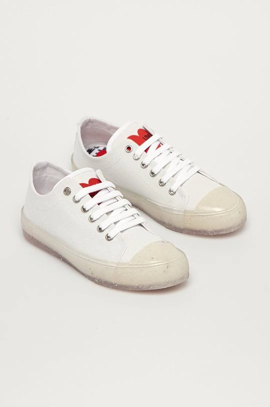 Πάνινα παπούτσια από τη συλλογή Love Moschino. Μοντέλο από συνδυασμό υφασμένου και συνθετικού υφάσματος.