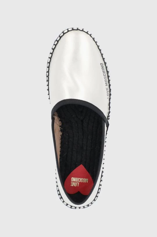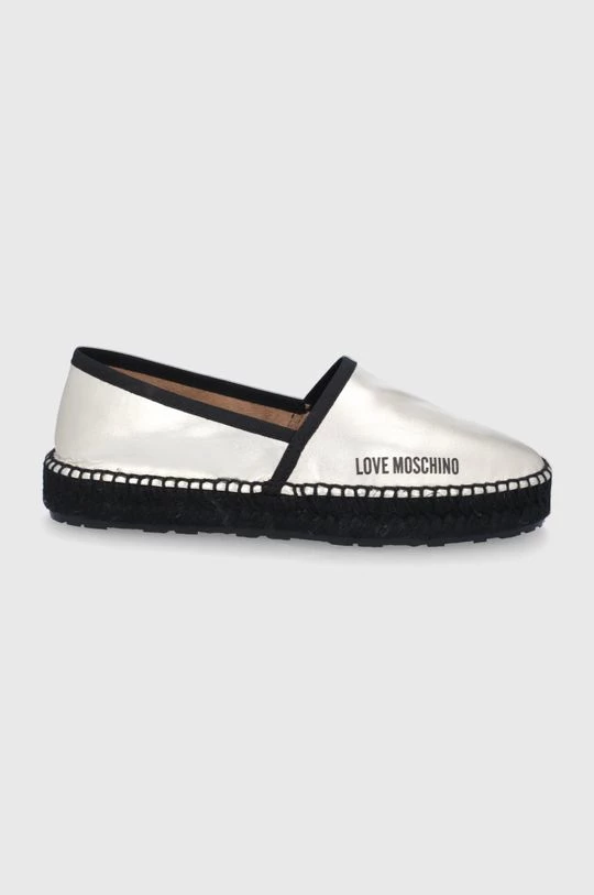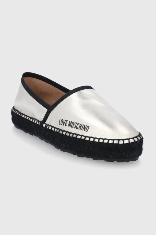 Εσπαντρίγιες από τη συλλογή Love Moschino. Μοντέλο από συνδυασμό φυσικού δέρματος και υφασμένου υφάσματος.