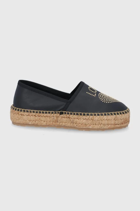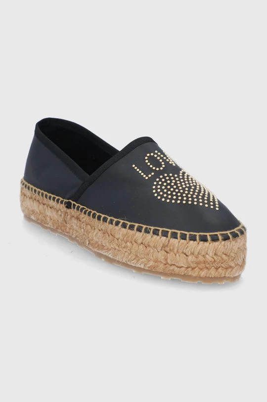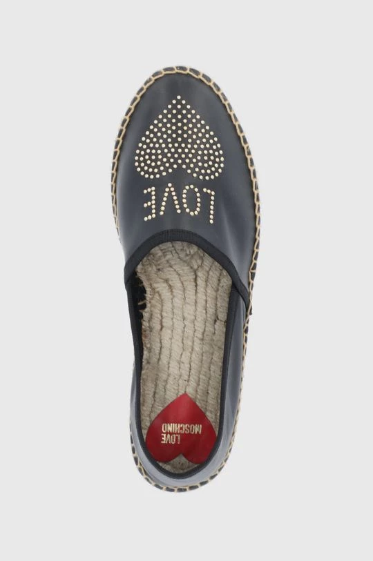 Εσπαντρίγιες από τη συλλογή Love Moschino. Μοντέλο από συνδυασμό φυσικού δέρματος και υφασμένου υφάσματος.