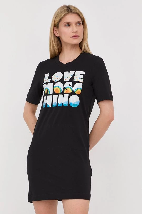 Φόρεμα από τη συλλογή Love Moschino. Ίσιο μοντέλο από λεπτό, πολύ ελαστικό πλεκτό. Εξαιρετικά άνετο υλικό, κατασκευασμένο από φυσικές ίνες.