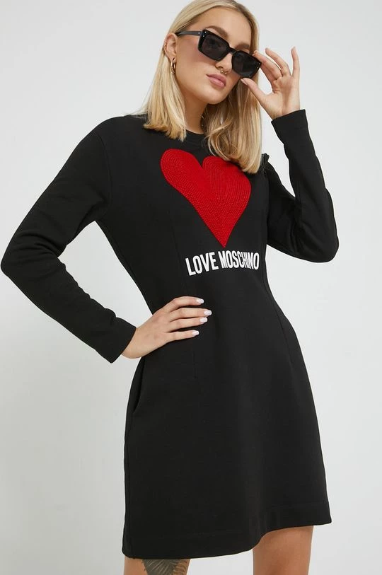 Φόρεμα από τη συλλογή Love Moschino. Ανοιχτό μοντέλο από από πλεκτό με απλικέ.