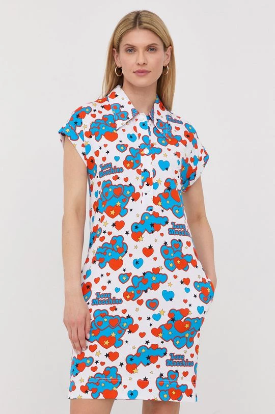 Ελαφρύ φόρεμα από τη συλλογή Love Moschino. Ίσιο μοντέλο από λεπτό, πολύ ελαστικό πλεκτό.
