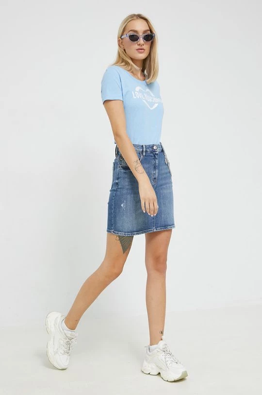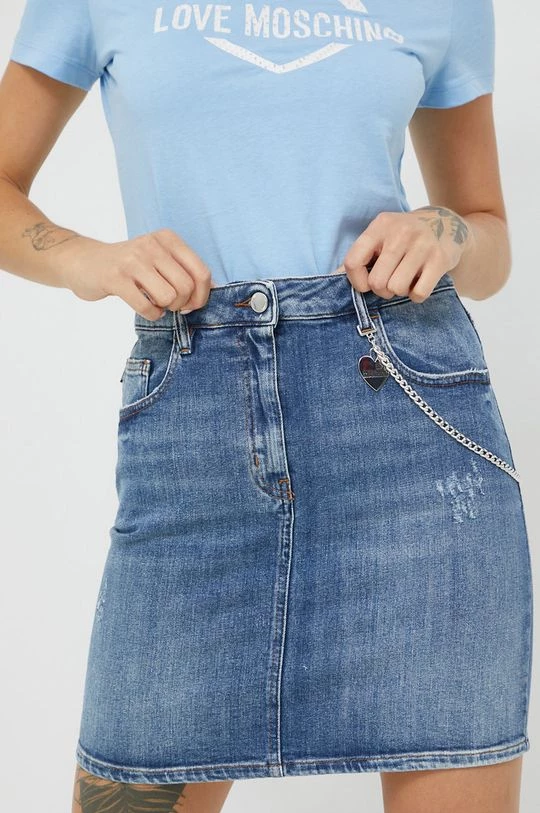 Φούστα από τη συλλογή Love Moschino. Model o ευθεία τμήμα, από τζιν.