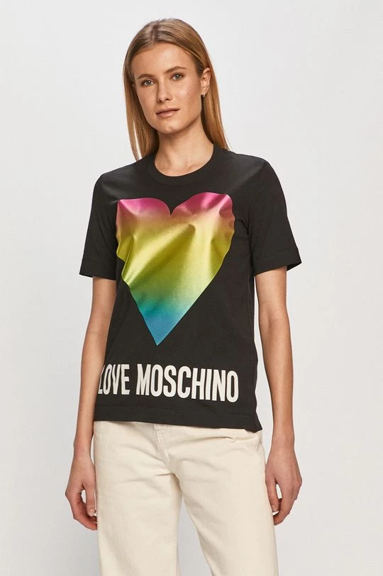 Μπλουζάκι από τη συλλογή Love Moschino. Μοντέλο από πλεκτό με εκτύπωση.