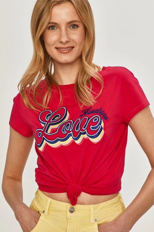 Μπλουζάκι από τη συλλογή Love Moschino. Μοντέλο από πλεκτό με εκτύπωση.