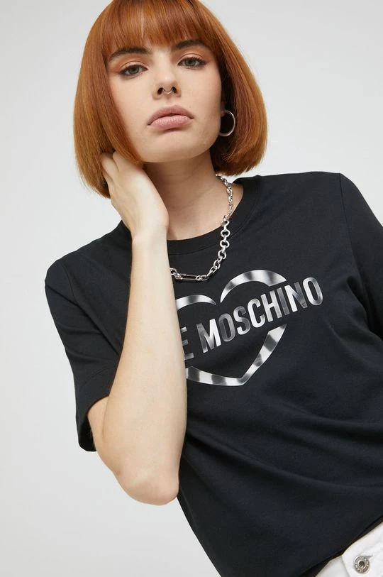 Ελαφρύ μπλουζάκι από τη συλλογή Love Moschino. Μοντέλο από λεπτό, ελαστικό πλεκτό.