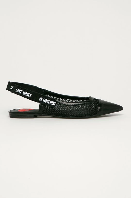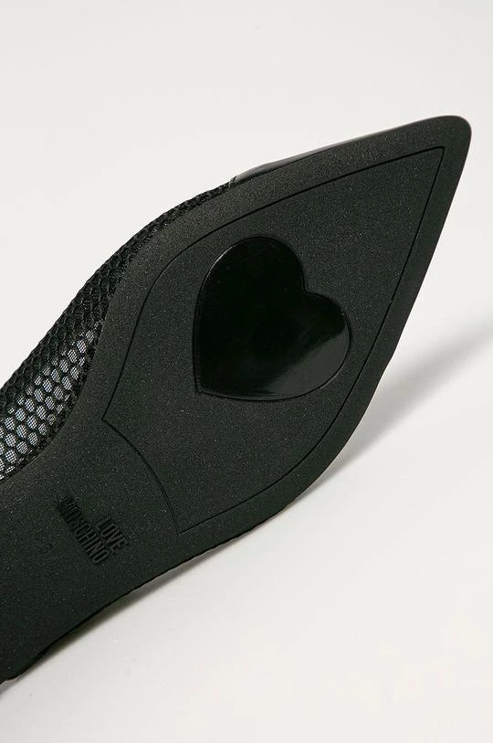 Μπαλλαρίνες από τη συλλογή Love Moschino. Μοντέλο από συνδυασμό φυσικού δέρματος και υφασμένου υφάσματος.