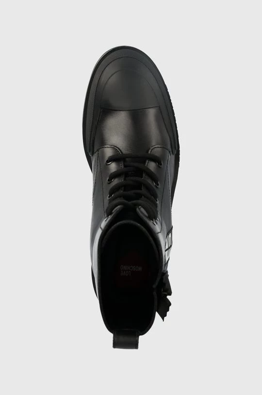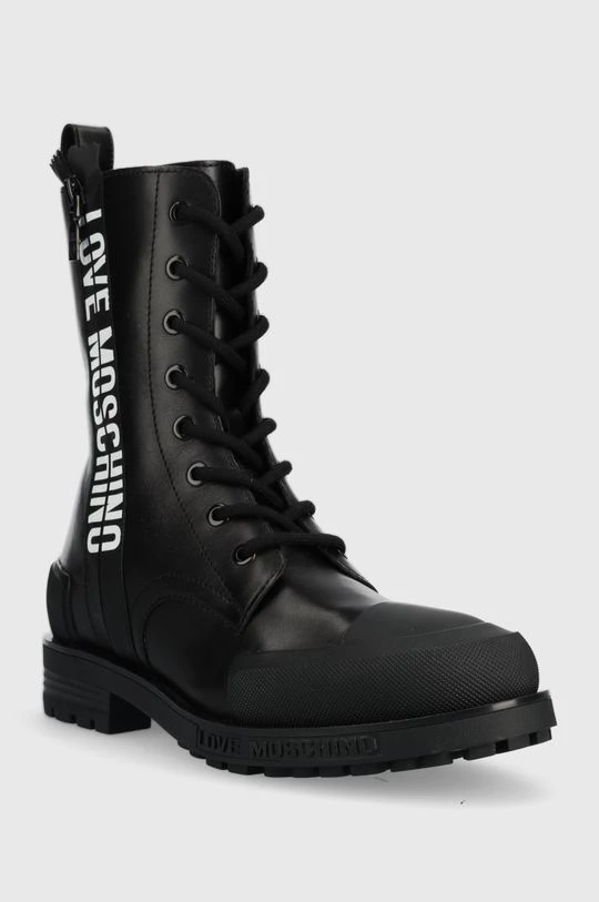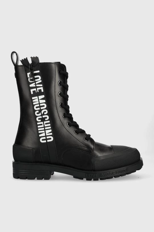 Μποτάκια εργασίας από τη συλλογή Love Moschino. Μοντέλο από από συνδυασμό φυσικού δέρματος και συνθετικού υφάσματος.