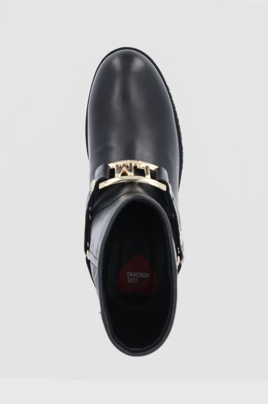 Μποτάκια από τη συλλογή Love Moschino. Μοντέλο από συνδυασμό φυσικού δέρματος και υφασμένου υφάσματος.