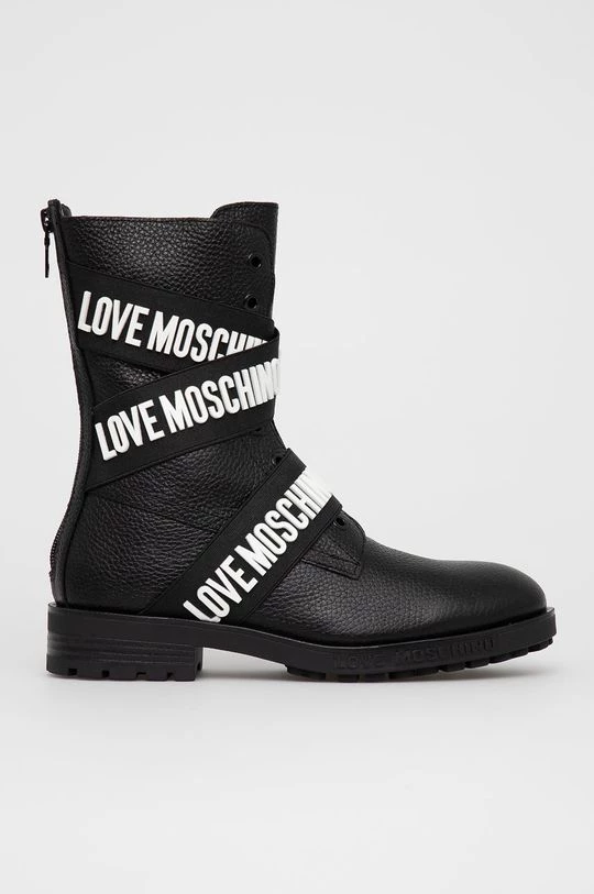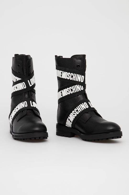 Μποτάκια από τη συλλογή Love Moschino. Μοντέλο από συνδυασμό φυσικού δέρματος και υφασμένου υφάσματος.