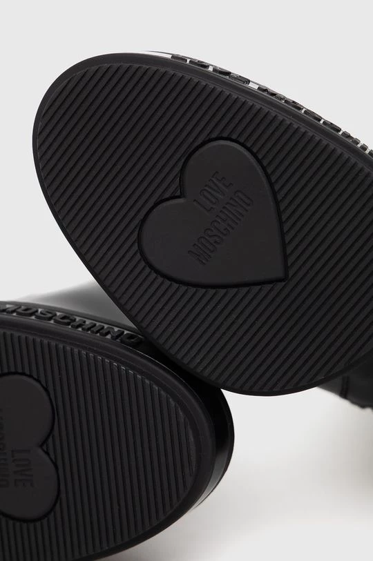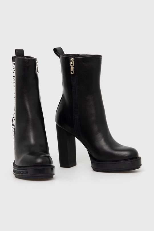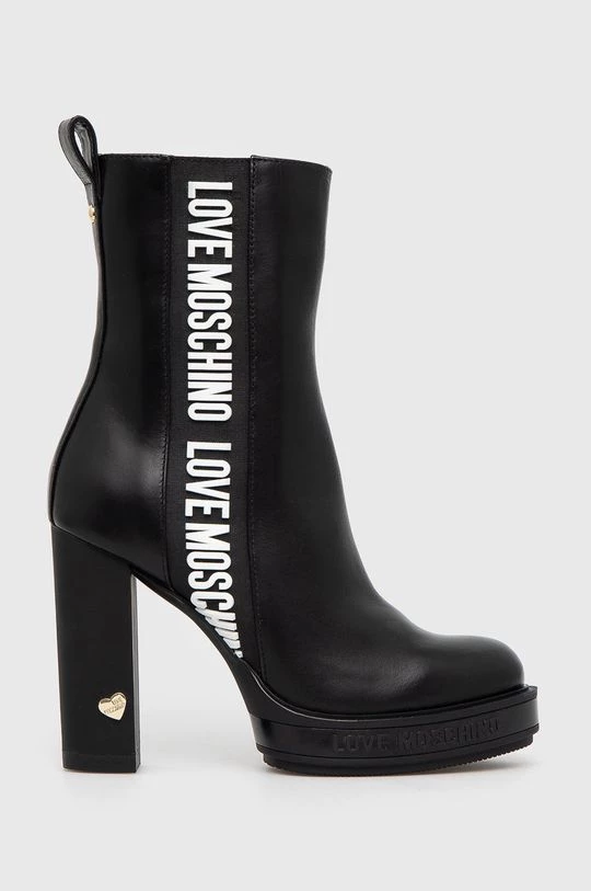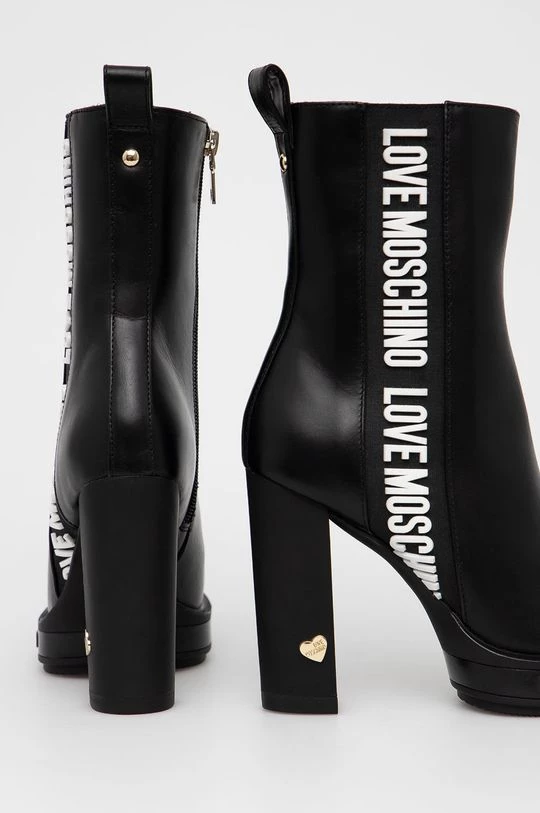 Μποτάκια από τη συλλογή Love Moschino. Μοντέλο από συνδυασμό φυσικού δέρματος, υφασμένου και συνθετικού υφάσματος.