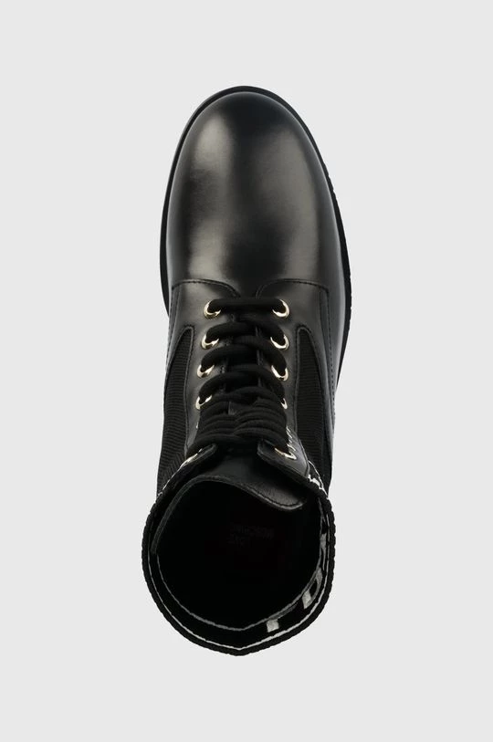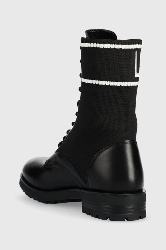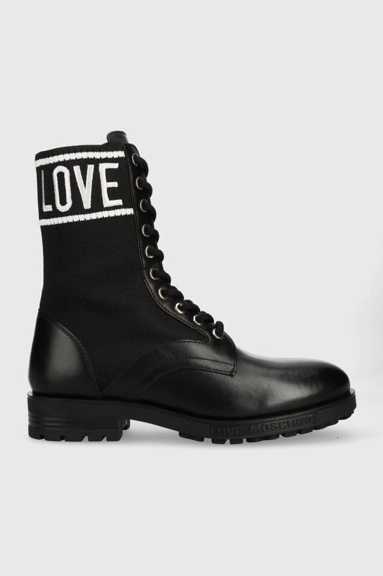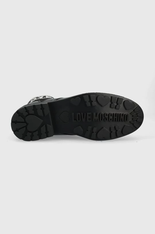 Μποτάκια εργασίας από τη συλλογή Love Moschino. Μοντέλο από από συνδυασμό φυσικού δέρματος και υφασμένου υφάσματος.
