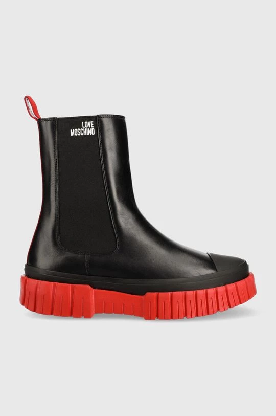 Μπότες Τσέλσι από τη συλλογή Love Moschino. Μοντέλο από από συνδυασμό φυσικού δέρματος και υφασμένου υφάσματος.
