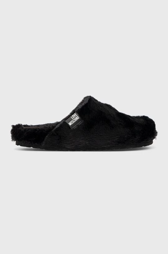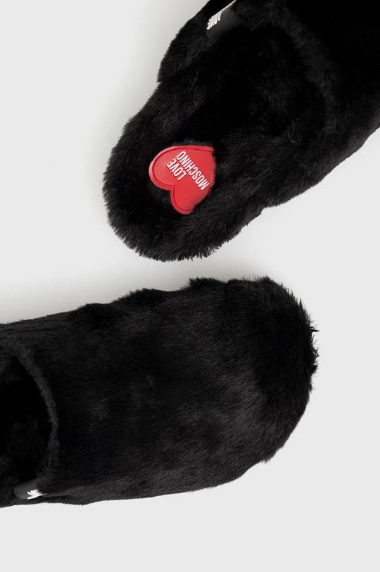 Παντούφλες από τη συλλογή Love Moschino. Μοντέλο από από υφασμένο ύφασμα.