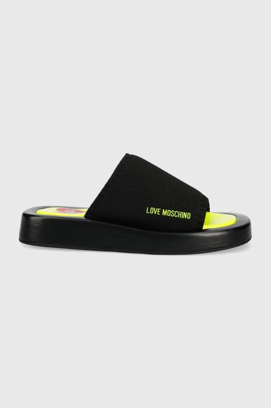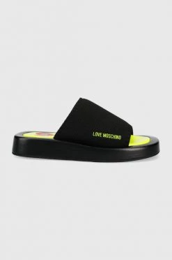 Παντόφλες από τη συλλογή Love Moschino. Μοντέλο από από υφασμένο ύφασμα.