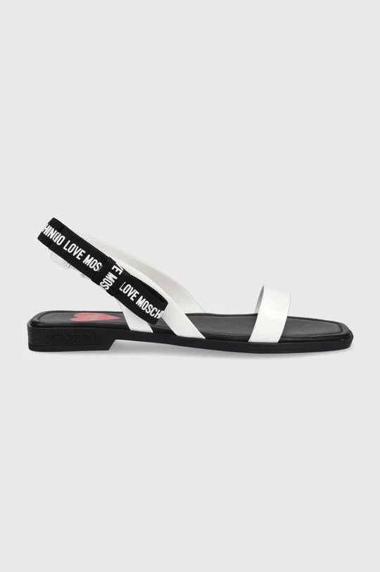 Σανδάλια από τη συλλογή Love Moschino. Μοντέλο από από συνθετικό ύφασμα.