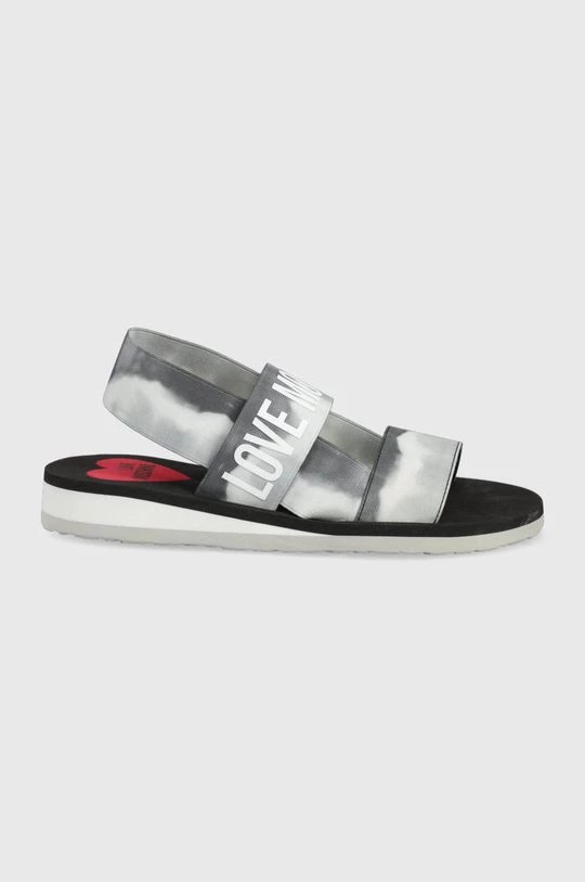 Σανδάλια από τη συλλογή Love Moschino. Μοντέλο από από υφασμένο ύφασμα.
