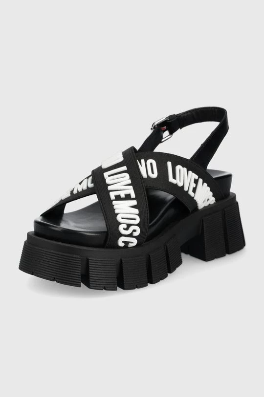 Σανδάλια από τη συλλογή Love Moschino. Μοντέλο από από συνδυασμό φυσικού δέρματος, υφασμένου και συνθετικού υφάσματος.