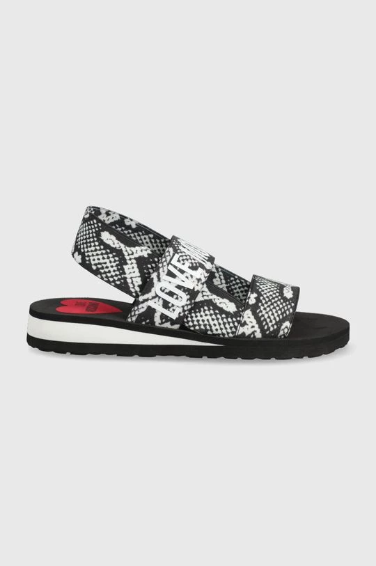 Σανδάλια από τη συλλογή Love Moschino. Μοντέλο από από υφασμένο ύφασμα.