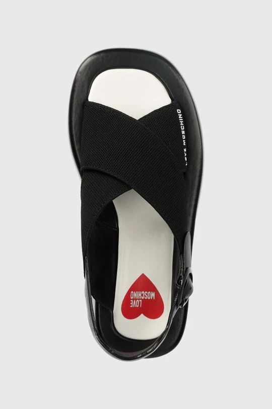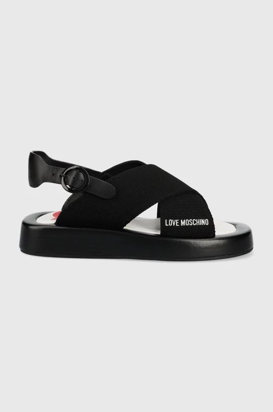 Σανδάλια από τη συλλογή Love Moschino. Μοντέλο από από συνδυασμό φυσικού δέρματος και υφασμένου υφάσματος.
