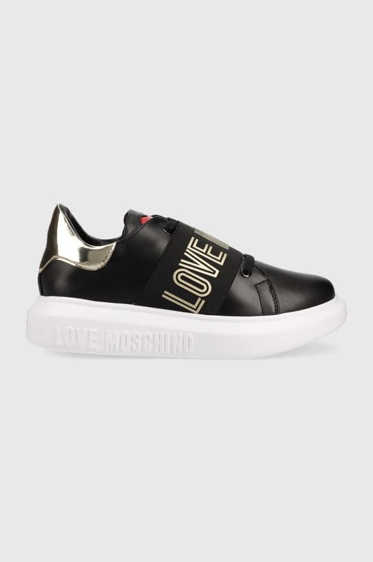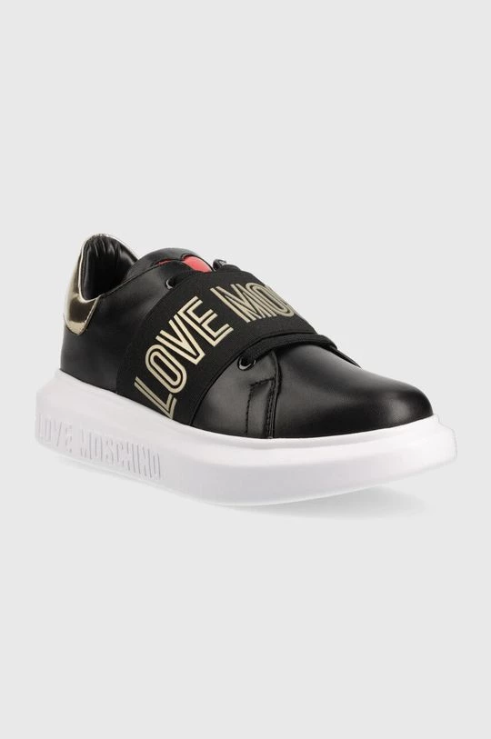 Sneakers από τη συλλογή Love Moschino. Μοντέλο κατασκευασμένο κατασκευασμένο από συνδυασμό οικολογικού δέρματος, φυσικού δέρματος και υφαντικών υλικών.