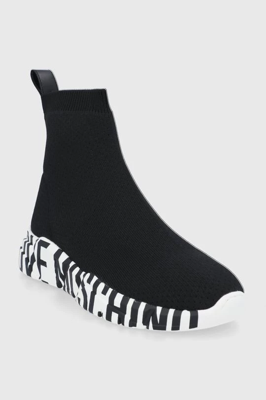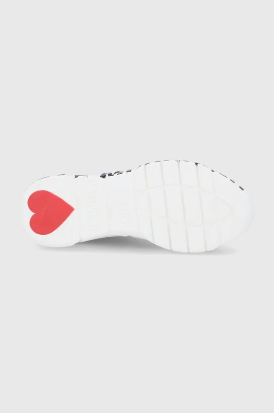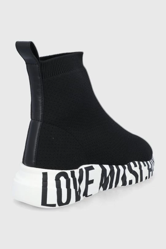 Υποδήματα από τη συλλογή Love Moschino. Μοντέλο από από συνδυασμό υφασμένου υφάσματος και φυσικού δέρματος.