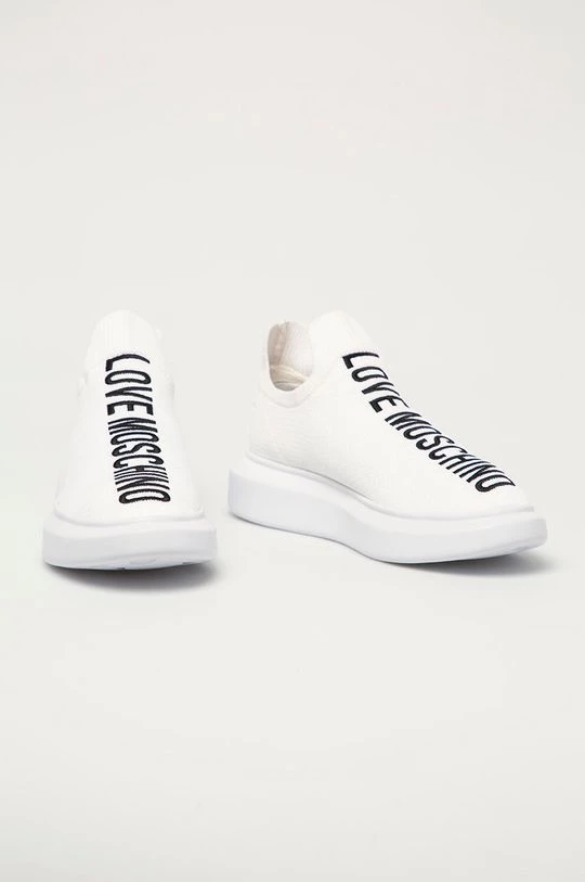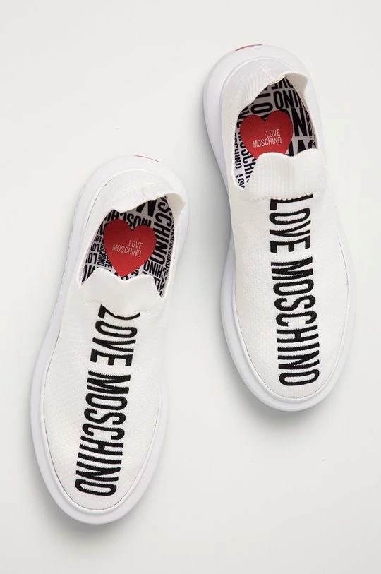 Υποδήματα από τη συλλογή Love Moschino. Μοντέλο από υφασμένο ύφασμα.