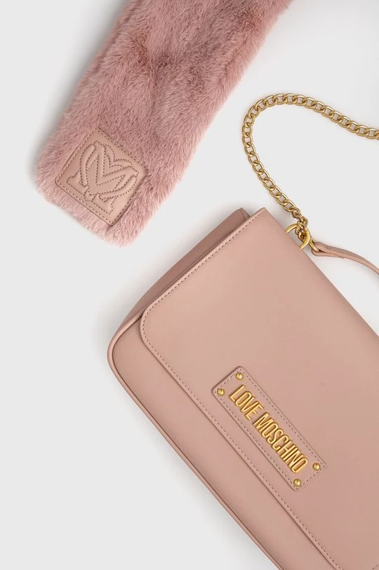 Μικρή τσάντα από τη συλλογή Love Moschino. με κλείστρο μοντέλο από από οικολογικό δέρμα. Συνδεμένο με το εντυπωσιακό μαντήλι από οικολογική γούνα.