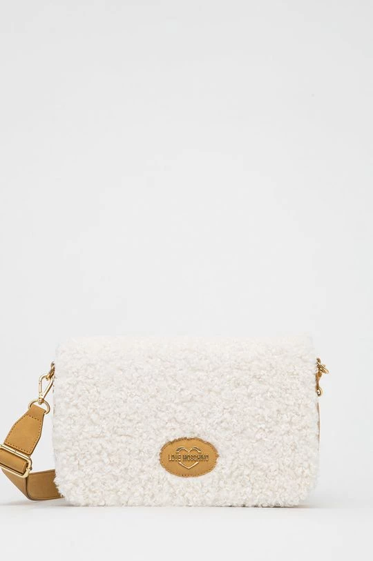 Μεσαίου μεγέθους τσάντα από τη συλλογή Love Moschino. με κλείστρο μοντέλο από από υφασμένο ύφασμα.